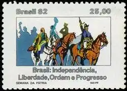O lema "Ordem e Progresso" encontra-se escrito na Bandeira Nacional do Brasil idealizada por Raimundo Teixeira Mendes e desenhada pelo artista Décio Villares,[1] com a fundação da República brasileira por Benjamin Constant.