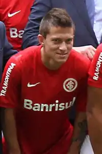 | “ | O Dunga é um cara que eu tenho uma enorme gratidão. Ele me ajudou muito, porque eu tinha problema com peso. Eu estava lesionado e depois emendei as férias, estava há quase quatro meses sem jogar. Estava triste, acabei descontrolando, voltei acima do peso. Pediram para os garotos do Inter B, como eu e o Lucas Lima, voltarmos mais cedo das férias para jogar o Gauchão. O Dunga já tinha me visto jogar antes pelo profissional, e um dia me chamou para conversar, logo quando voltei. Fechou a cara e me deu uma [...] bronca!
