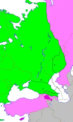 - A linha C segue a bacia hidrográfica do Cáucaso