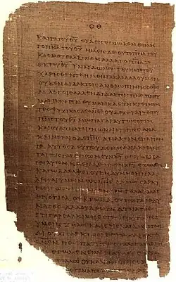 Trecho da Primeira Epístola aos Coríntios no Papiro 46. | |