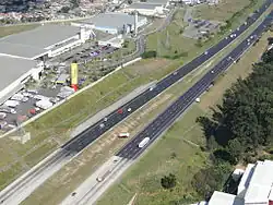 Via Dutra (Pedágio) (Valor R$ 2,40) - km 130 - Fim do trecho leste sob concessão da SPMar. ( Acesso a Rodovia Presidente Dutra - a direita sentido Rio de Janeiro e a esquerda sentido São Paulo.
