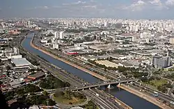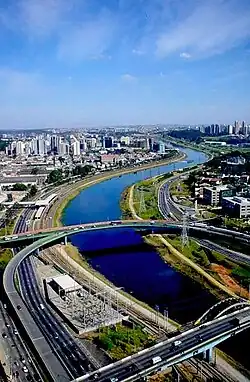 Além da poluição atmosférica, o município tem sérios problemas devido à poluição hídrica, concentrada principalmente em seus dois principais rios: o rio Tietê, altamente degradado e um dos rios mais poluídos do país, e o rio Pinheiros.[116] No entanto, ambos passam pelo processo de despoluição, tendo o Projeto Tietê sido criado em 1992 e já custou 2,7 bilhões de dólares;[117] do mesmo modo, já foram gastos, em 25 anos desde seu lançamento até 2021, cerca de 28,5 bilhões de reais em projetos de recuperação do segundo.[118] Em 2019, foi criado o Projeto Novo Rio Pinheiros, sob a administração de João Doria, cujo intuito é reduzir o esgoto lançado em afluentes, melhorar a qualidade das águas e revitalizar as margens até 2026; a previsão inicial era até 2022.[119][120]