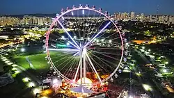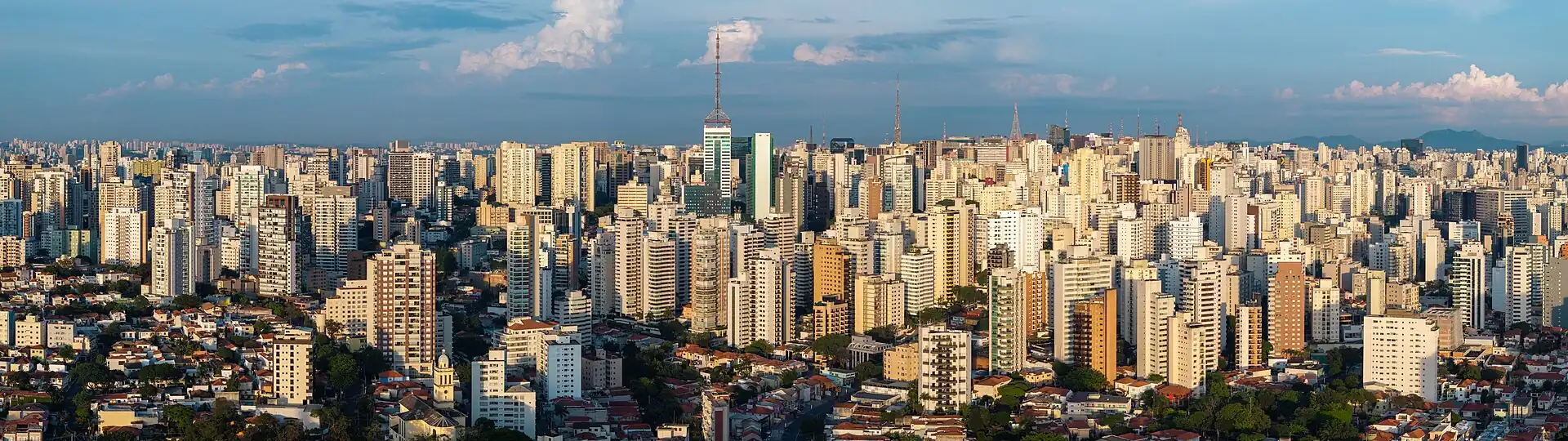 Panorama a partir do Itaim Bibi, com destaque para Parque do Povo, Marginal Pinheiros, Jockey Club e Pico do Jaraguá. |