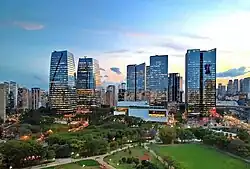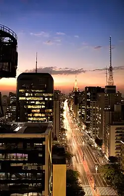 São Paulo é a maior economia urbana da América Latina,[19] representando cerca de 10% do PIB brasileiro e por volta de 31% do PIB paulista (a única cidade brasileira a ultrapassar a faixa de 1 trilhão de reais em PIB).[20] A cidade é sede da B3, a maior bolsa de valores latino-americana em capitalização de mercado,[21] e possui diversos distritos financeiros, principalmente nas áreas ao redor das avenidas Paulista, Faria Lima e Berrini. São Paulo abriga 63% das multinacionais estabelecidas no Brasil[22] e é a fonte de cerca de um terço da produção científica brasileira,[23] sendo um dos 50 clusters de ciência, inovação e tecnologia mais avançados do mundo.[24] Sua principal universidade, a Universidade de São Paulo (USP), é frequentemente considerada a melhor da América Latina,[25] enquanto a cidade é regularmente classificada como uma das melhores do mundo para ser um estudante universitário nos relatórios anuais QS World University Rankings.[26][27] A metrópole também abriga vários dos arranha-céus mais altos do Brasil, como os edifícios Alto das Nações, Platina 220, Figueira Altos do Tatuapé, Mirante do Vale, Itália, Altino Arantes e Torre Norte. É a capital com o melhor saneamento básico (2022),[28] a segunda mais desenvolvida, de acordo com o Índice FIRJAN de Desenvolvimento Municipal (2025),[29] a sexta em Índice de Progresso Social (IPS)[30] e a nona mais arborizada do país,[31] o que lhe garantiu os títulos internacionais de "Cidade Árvore do Mundo" da Organização das Nações Unidas (ONU) e "Capital Verde Ibero-americana",[32][33] além do reconhecimento do Guinness World Records pelo "maior programa de segurança alimentar do mundo".[34]
