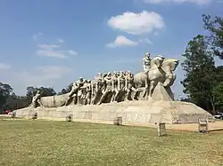 No século XVII, homens que trabalhavam na região sudeste com a exploração de minérios, escravização de indígenas e captura de escravos fugitivo, que em sua época eram conhecidos como "paulistas" ou "sertanistas",[50] foram os responsáveis pelo início das expedições das bandeiras, que geralmente partiam da cidade de São Paulo seguindo o curso dos rios, criando trilhas e pontos de apoio que depois se transformariam em cidades. Essas explorações, que acabaram por ampliar o território da colônia do Estado do Brasil, tinham como principal objetivo a captura de indígenas para a escravidão através de ataques à aldeias e missões jesuíticas. Os principais "bandeirantes", como esses homens ficaram conhecidos posteriormente, foram Fernão Dias Pais, Manuel de Borba Gato, Bartolomeu Bueno da Silva (Anhanguera), Domingos Jorge Velho, Antônio Raposo Tavares, Nicolau Barreto e Manuel Preto.[51]