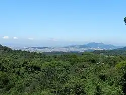 Avenida Paulista (Espigão da Paulista), além do Pico do Jaraguá à direita da fotografia