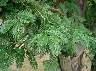 - ↑ a b M. R. Ahuja & D. B. Neale (2002). «Origins of polyploidy in coast redwood (Sequoia sempervirens) and relationship of coast redwood to other genera of Taxodiaceae» (PDF). Silvae Genetica. 51 (2–3): 93–100