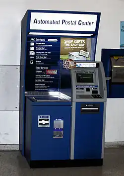 A USPS também tem os Automated Postal Centers, que são quiosques autônomos (muitas vezes fornecendo serviço 24 horas) que são capazes de realizar pesagem, de franquiar, armazenamento e embalagens para posterior resgate. Do mesmo modo, as tradicionais máquinas estão disponíveis em muitos dos correios para comprar selos.[23] Há aproximadamente cerca 36.000 correios, estações, e sucursais da USPS.[24] Para além de enviar e receber cartas e encomendas, a filial USPS oferece selos, postais, papel de carta e fotografias para passaporte americano.[25] A partir de Abril de 2020, é necessário solicitar agendamento para os serviços de passaportes na USPS.