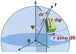 Volume elementar em coordenadas esféricas (convenção norte-americana)