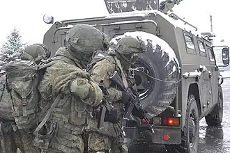 Spetsnaz pode significar as tropas de elite controladas pelo Serviço de Segurança Federal (FSB) em missões de antiterrorismo e antissabotagem, pelo Ministério do Interior (e polícia) MVD, e forças especiais do exército controladas pelo serviço de inteligência militar GRU.