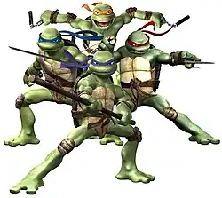 ![]() As Tartarugas Ninja, com seus designs do filme de 2007. No sentido horário: Michelangelo, Raphael, Donatello e Leonardo. | |