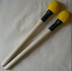 É tocado com uma baqueta em uma mão e com os dedos e a palma da outra mão. A baqueta é feita de madeira e tem uma ponta forrada de feltro ou couro e ocasionalmente algum material de enchimento cobrindo a ponta de madeira. Enquanto uma mão toca o tambor com a baqueta, a outra abafa ou toca ritmos de suporte em torno do pulso principal.