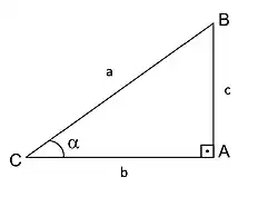 Dois triângulos retângulos que compartilham um segundo ângulo são necessariamente similares, e a proporção (ou razão) entre o comprimento do lado oposto a e o comprimento da hipotenusa será, portanto, a mesma nos dois triângulos. Este valor será um número entre 0 e 1 que depende apenas de Este número é chamado de seno[4] de A e é escrito como Similarmente, pode-se definir :