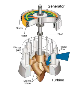 As turbinas hidráulicas são turbinas projetadas especificamente para transformar a energia hidráulica (a energia de pressão e a energia cinética) de um fluxo de água em energia mecânica na forma de torque e velocidade de rotação.