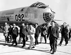 Visita do presidente turco Celâl Bayar em visita a uma base aérea nos Estados Unidos em 1954. Bayar foi deposto pelo golpe militar de 1960.