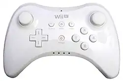 • Wii U Pro Controller: Foi lançado junto com o Wii U, é uma atualização do Classic Controller do Wii é destinado a jogadores mais hardcore com um design mais próximo aos controles do Xbox One e PlayStation 4.