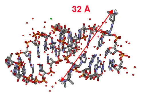 Outra característica estrutural importante que distingue DNA de RNA é a presença de hidroxila no carbono 2' da ribose. A presença desse grupo funcional faz com que a o dobramento da molécula gire no sentido do A-form, isto é, há um aumento no número de bases por rotação, o que aumenta o sulco maior e estreita o sulco menor, enquanto o DNA obedece a conformação B-DNA, aquela descrita por Watson e Crick. A consequência da hidroxila no carbono 2' é uma conformação flexível que pode atacar quimicamente o fosfodiester adjacente.