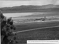 O leito do lago fez uma faixa ideal para testar aeronaves, e as cadeias de montanhas do Vale do Emigrante e o perímetro do NTS protegeram o local dos visitantes; era cerca de 100 mi (160 km) ao norte de Las Vegas.[24] A CIA pediu à AEC para adquirir o terreno, designado "Área 51" no mapa, e adicioná-lo ao local de teste de Nevada.[25]:56-57