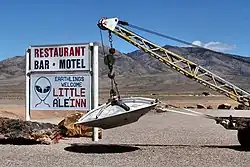 A cidade de Rachel, Nevada (a cidade mais próxima da base) possui uma pequena fama por ser "o lar oficial da Área 51". Localizada a três horas de carro a partir de Las Vegas, Rachel recebe um modesto número de turistas por ano, e várias lanchonetes e lojas vendem comida e artigos com temática alienígena. Um pequeno museu vende mapas, fotos, broches e outros artigos, e um bar local, chamado "The Little A'le'Inn", orgulhosamente exibe uma cápsula do tempo recebida de presente pela equipe de produção do filme Independence Day.[38]