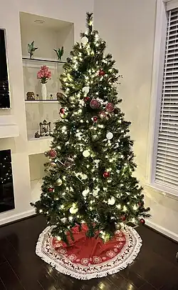 As árvores de Natal, que têm origem na tradição cristã luterana, embora agora sejam usadas em muitas denominações cristãs, como a Igreja Católica e a Igreja Metodista, são usadas para decorar igrejas durante o tempo litúrgico do Advento; durante o período do Natal, as igrejas cristãs exibem a tradicional árvore de Natal em seus santuários.[95]