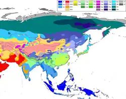 Mapa climático da Ásia de acordo com a classificação climática de Köppen-Geiger