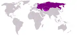 Faz fronteira no lado setentrional, com o oceano Glacial Ártico; no lado meridional, com o oceano Índico; no lado oriental, com o oceano Pacífico; e no lado ocidental, com os montes Urais, com o rio Ural e com os mares Cáspio, com o Negro, com o Mediterrâneo e com o Vermelho.[8]