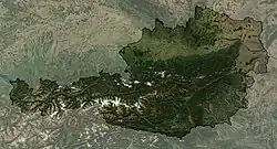 A Áustria (em alemão: Österreich [ˈøːstɐˌʁaɪç] (ⓘ)), oficialmente República da Áustria (em alemão: ⓘ), é um país de cerca de 9 milhões de habitantes,[2] localizado na Europa Central. É limitada pela Alemanha e Chéquia (Tchéquia) a norte, Eslováquia e Hungria a leste, Eslovênia e Itália a sul, e Suíça e Liechtenstein a oeste. O seu território abrange 83 872 quilômetros quadrados e é influenciado por um clima temperado e alpino. O terreno é muito montanhoso, devido à presença dos Alpes; apenas 32% do país é inferior a 500 metros de altitude e seu ponto culminante chega aos 3 797 metros.[6] A maioria da população fala alemão,[7] que também é língua oficial do país.[1] Outros idiomas regionais reconhecidos são croata, húngaro e esloveno.[6]