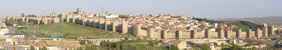 Muralhas de ÁvilaMuralhas de Ávila: principal monumento da cidade, foi construído entre os séculos XII e XIII, além de ser o muro mais bem preservado de toda a Espanha,[57] além de ser o maior monumento completamente iluminado do mundo.[58]