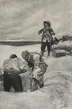 - William "Capitão" Kidd, executado por pirataria na Doca da Execução, Londres em 1701, famoso pelo tesouro enterrado, que supostamente deixou para trás.[41]