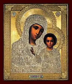 A confecção e o uso de ícones entraram na Rússia por Kiev, a seguir à sua conversão ao cristianismo ortodoxo em 988. Como regra geral, estes ícones seguem estritos modelos e fórmulas consagrados pelo uso, alguns originados em Constantinopla. Com o passar do tempo, os russos alargaram o vocabulário de tipos e estilos.