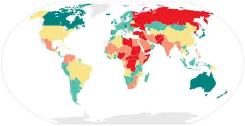 Bahamas, Porto Rico, Belize, Suriname, Guiana Francesa, Saara Ocidental, Somalilândia, Cisjordânia, Brunei, Ilhas Salomão, Nova Caledônia, Cabo Verde, São Tomé e Príncipe e Fiji não aparecem no relatório.