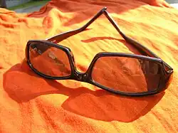 Em 1913, as lentes Crookes[7] foram introduzidas,[8] feitas de vidro contendo cério, que bloqueiam a luz ultravioleta.[9][10] No início dos anos 20, o uso de óculos de sol começou a se espalhar, principalmente entre as estrelas de cinema. Óculos de sol baratos produzidos em massa e feitos a partir de celuloide foram produzidos pela primeira vez por Sam Foster em 1929. Foster encontrou um mercado pronto nas praias de Atlantic City, Nova Jersey, onde começou a vender óculos de sol com o nome de Foster Grant a partir de um Woolworth no calçadão.[11] Em 1938, a revista Life escreveu sobre como os óculos de sol eram uma "nova moda para usar nas ruas da cidade ... uma afetação favorita de milhares de mulheres em todo os EUA". Ela afirmava que 20 milhões de óculos de sol foram vendidos nos Estados Unidos em 1937, mas estimou que apenas cerca de 25% dos usuários americanos precisavam deles para proteger seus olhos.[12] Os óculos de sol polarizados foram disponibilizados pela primeira vez em 1936, quando Edwin H. Land começou a fazer lentes com seu filtro Polaroid patenteado. Em 1947, a Armorlite Company começou a produzir lentes com resina CR-39.[13]