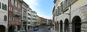 No praça principal (Piazza della Libertà) está o salão da cidade (Loggia del Lionello) construído em 1448-1457 no estilo veneziano-gótico oposto à torre do relógio (Torre dell’Orologio), em estilo venezia típico, que assemelha-se àquela da praça São Marco em Veneza. A praça principal foi começada em 1448 e projetada por Nicolò Lionello, um ourives local, e reconstruída depois de um incêndio em 1876. O novo projeto foi arquitetado por Andrea Scala.