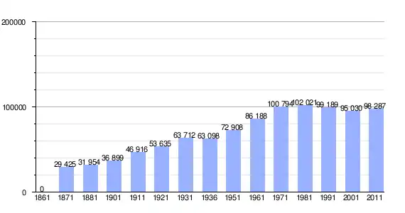 | Variação demográfica do município entre 1861 e 2011[3] |
