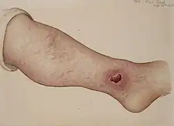 - Úlceras por vasculite: são lesões que surgem espontaneamente em áreas nas quais se tenha observado estigmas de vasculite num período imediatamente prévio. A causa exacta do surgimento das lesões é incerta mas infere-se que surjam devido à isquemia progressiva e intensa do tecido irrigado por determinada artéria ou arteríola, cujas paredes se encontram com processo inflamatório consistente (que é a própria definição de vasculite), e que resulta na perda de vitalidade e, inclusive, de necrose deste tecido;