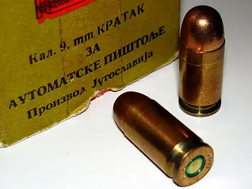 ![]() Um cartucho .380 ACP da Sellier & Bellot. | ||