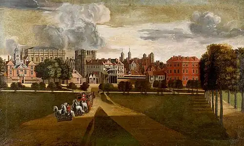 - ↑ Pepys regista uma maré alta em que Whitehall ficou inundado e os edifícios na área precisaram de profundas fundações para permitir a sua instalação.