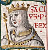 Rei Sancho I de Portugal. Iluminura do Livro dos reis ou Livro das gerações e linhagem dos reis, incluindo a Hispânia.