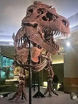 1990 — Sue , o maior e mais completo esqueleto de tiranossauro (Tyrannosaurus rex ) encontrado até hoje, é descoberto em Dakota do Sul .