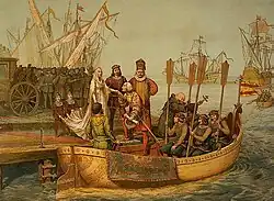 1492 — Cristóvão Colombo zarpa de Palos de la Frontera, na Espanha.