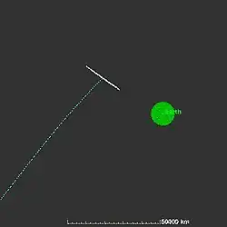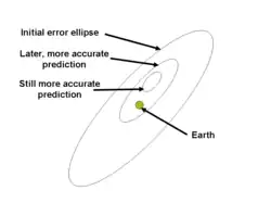 . - ↑ Russell Schweickart; et al. «Threat Characterization: Trajectory dynamics (White Paper 39)» (PDF). Figure 4, pp. 9. B612 Foundation. Consultado em 22 de fevereiro de 2008. Arquivado do original (PDF) em 28 de fevereiro de 2008