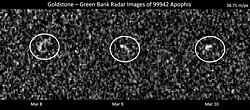 - Observações de radar extremamente precisas no radiotelescópio de Arecibo em 27, 28 e 30 de janeiro refinam ainda mais a órbita e mostram que a aproximação de abril de 2029 acontecerá a 5,6 raios terrestres, aproximadamente metade da distância estimada anteriormente.