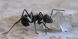 Formiga alimentando-se de cristais de açúcar