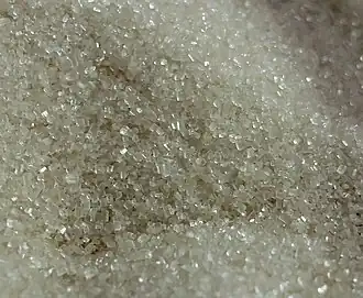 • Açúcar refinado granulado: puro, sem corantes, sem umidade ou empedramento e com cristais bem definidos e granulometria homogênea. O açúcar refinado granulado é muito utilizado na indústria farmacêutica, em confeitos, xaropes de excepcional transparência e mistura seca em que são importantes pelo aspecto, escoamento e solubilidade.[42]