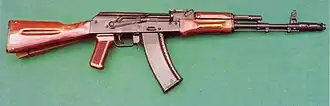 - AKS-74: Variante da AK-74 com coronha feita em aço dobrável para esquerda;