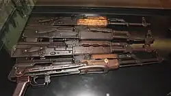 - AKM: variante aperfeiçoada e mais leve da AK-47. Dispõe de uma caixa de culatra do Tipo 4, feito de metal estampado e rebitado, um dispositivo na boca do cano para contrariar o seu levantamento em fogo automático e uma redução de peso para os 3,61 kg;