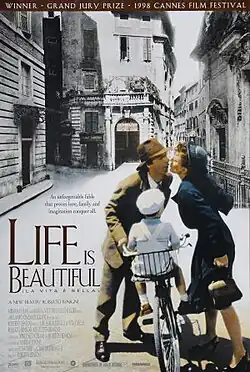 A Vida É Bela foi exibido no Festival de Cannes de 1998 e ganhou o Grand Prix,[32] ao receber o prêmio, Roberto Benigni beijou os pés do presidente do júri, Martin Scorsese.[27]