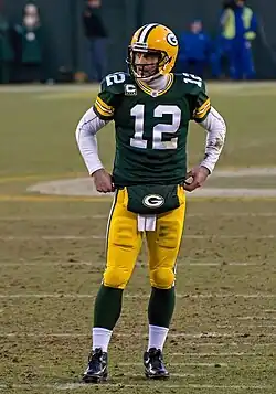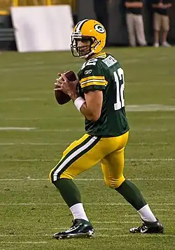 Aaron Charles Rodgers (Chico, 2 de dezembro de 1983) é um jogador de futebol americano que atua como quarterback pelo Pittsburgh Steelers na National Football League (NFL). Ele começou sua carreira jogando futebol americano universitário na Butte College em 2002[2] antes de se transferir para a Universidade da Califórnia em Berkeley, atuando por lá por dois anos, estabelecendo vários recordes, especialmente em termos de eficiência passando a bola.[3] Rodgers foi selecionado na primeira rodada do Draft da NFL de 2005 pelo Green Bay Packers.[4] Campeão do Super Bowl em 2011 pelos Packers, Rodgers é considerado um dos melhores quarterbacks do seu tempo,[5][6][7][8] além de um dos mais talentosos.[9][10][11][12]