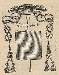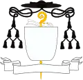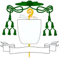 Abade Territorial | Os Abades com jurisdição sobre todos os fiéis circunscritos à sua Abadia Territorial, sejam clérigos, religiosos ou leigos (abades nullius) usam no seu brasão as insígnias episcopais, com o galero verde de 12 borlas, mas substituindo a cruz episcopal pelo báculo abacial (com velo, isto é um lenço, no nó). Os Abades Mitrados têm o privilégio de usar no brasão as mesmas insígnias dos Abades Territoriais. |