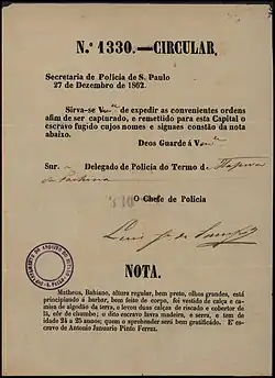 - ↑ MALHEIRO, Agostinho Marques Perdigão. A Escravidão no Brasil. Vol. I. Fonte digital. Digitalização de edição em papel de 1866. Rio de Janeiro - Typografia. Disponível em <http://www.ebooksbrasil.org/adobeebook/malheiros1.pdf >